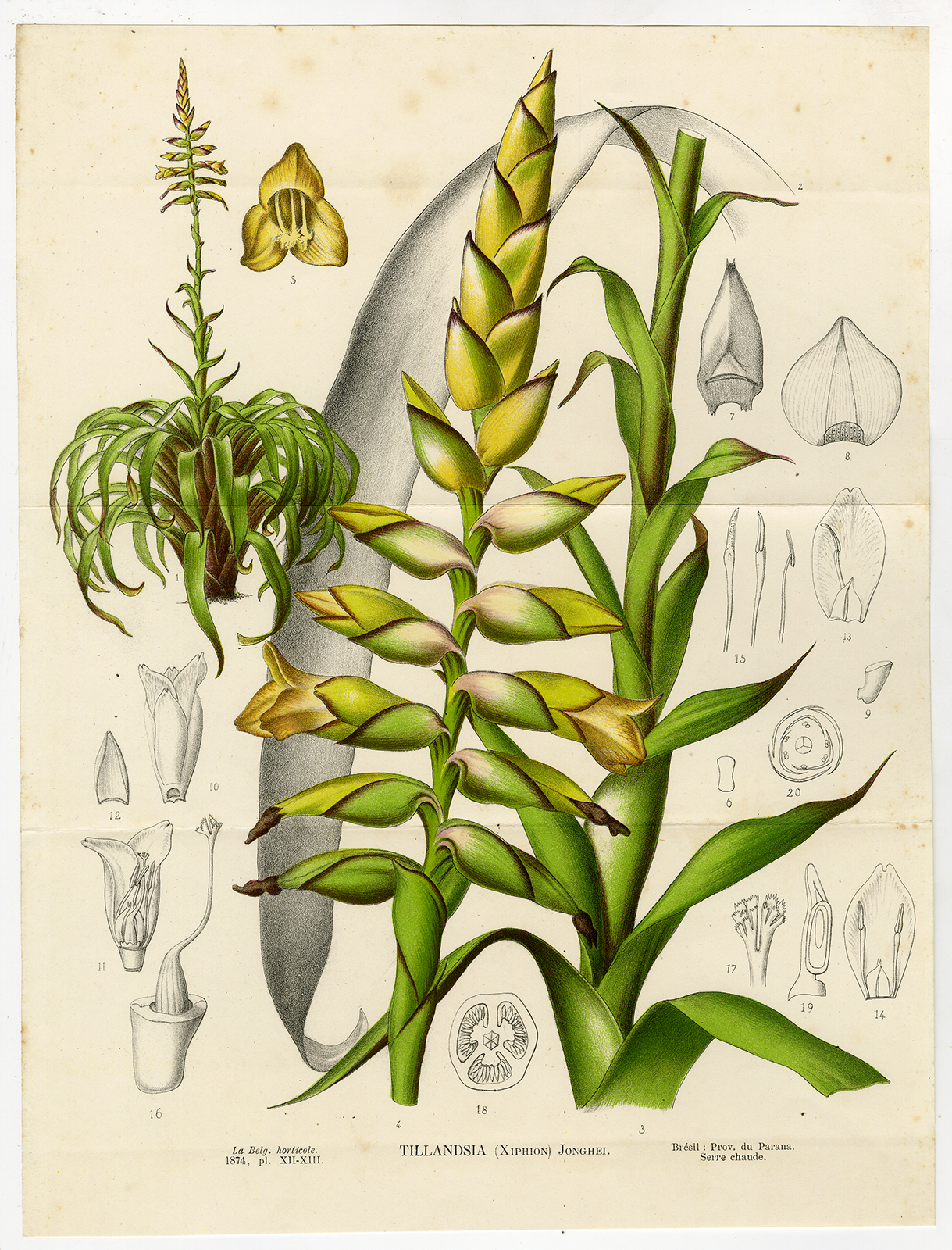 Antieke prent-TILLANDSIA-XIPHION-VRIESEA-JONGHEI-BROMELIA-Morren-1874