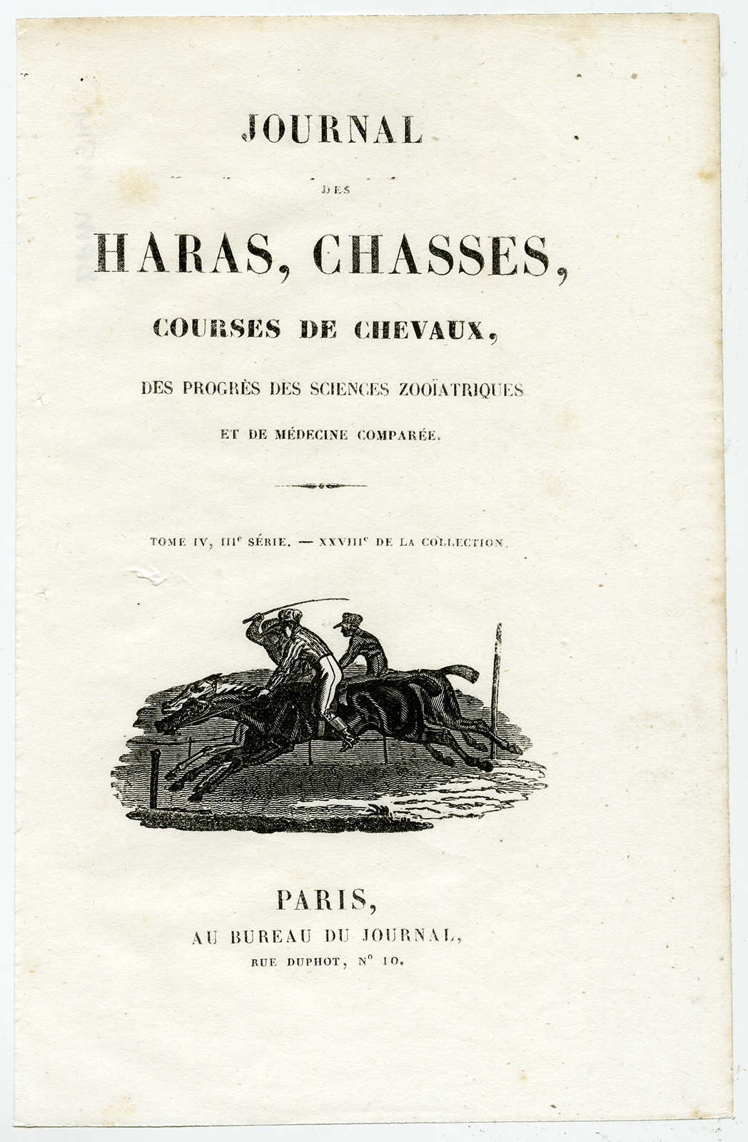 Antieke prent-TITELPAGINA-PAARDRENNEN-JOCKEY-Journal des Haras-1841
