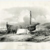 Onderwerp: Antieke prent, getiteld: ”Vissersboten. Een kusttafereel.” – Deze originele antieke print toont een kusttafereel met vissersboten. Naar het schilderij van Joseph Turner.