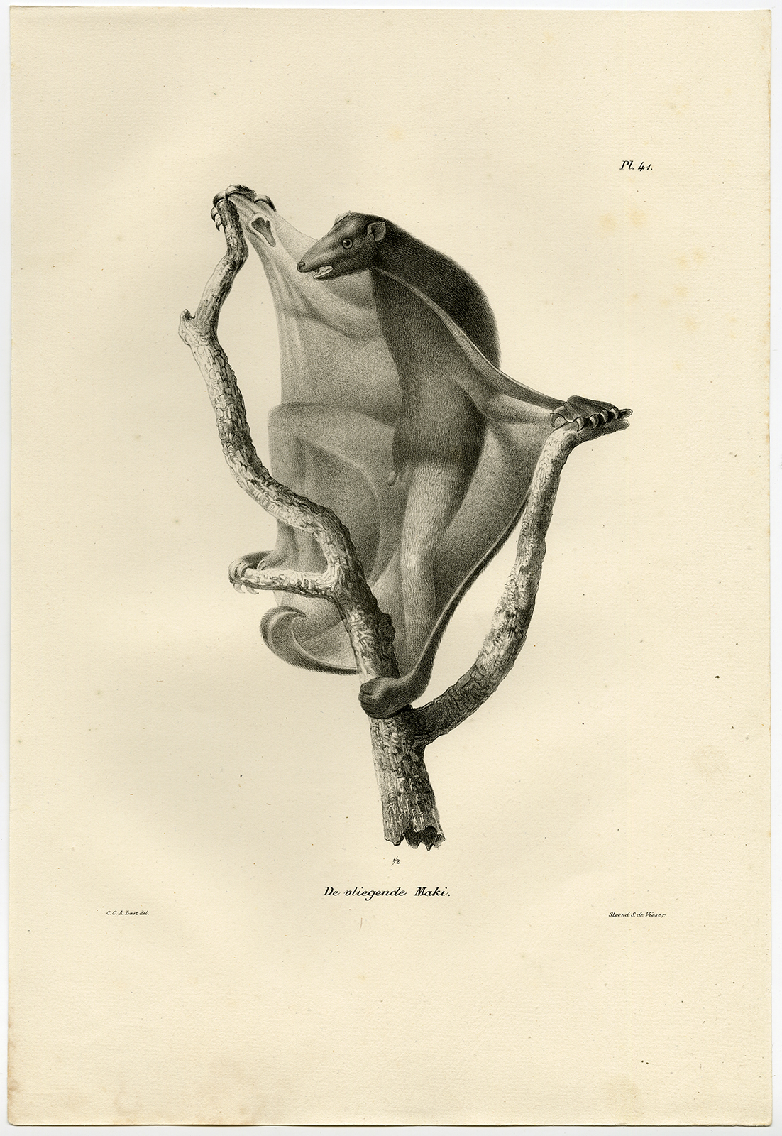 Antieke Prent – VLIEGENDE LEMUR-BORD 41 – Schinz-De Visser – 1845