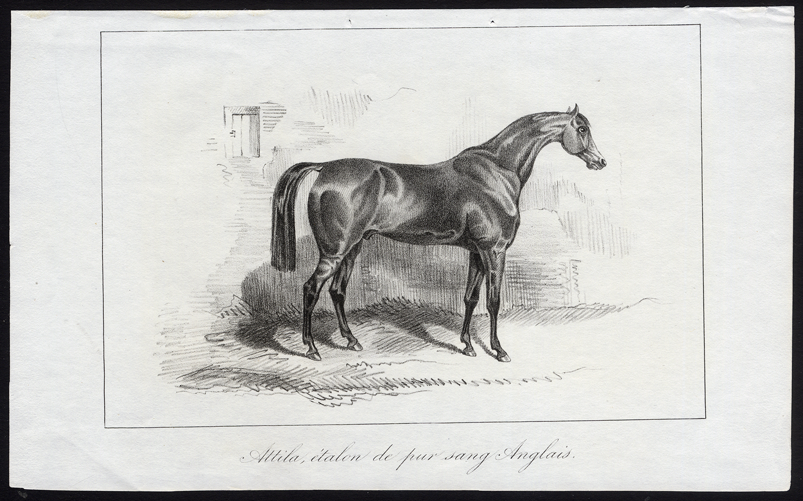 Antieke prent-volbloed paard-ATTILA-Journal des Haras-1846