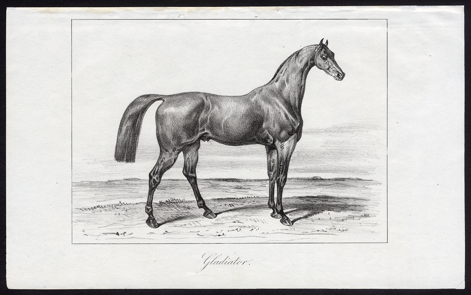 Antieke prent-volbloed renpaard-GLADIATOR-Journal des Haras-1847