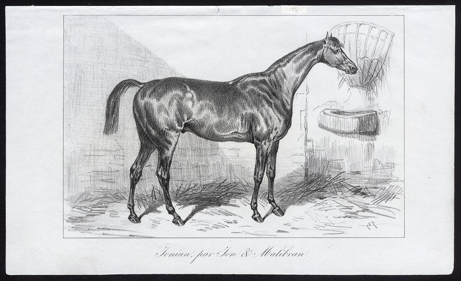 Antieke prent-volbloed renpaard-JONIAN-MALIBRAN-Journal des Haras-1848