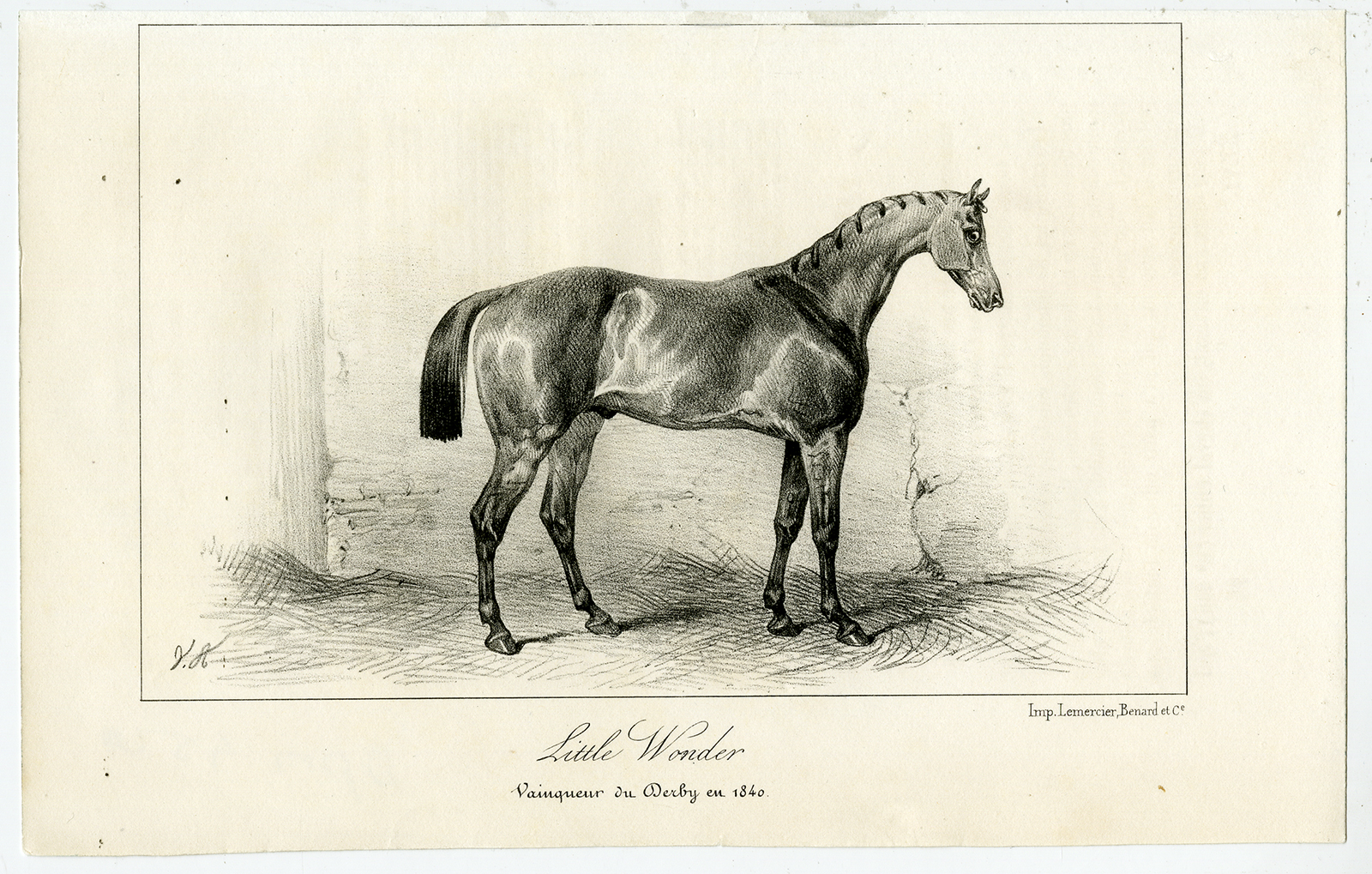 Antieke prent-volbloed renpaard-LITTLE WONDER-Adam-Journal des Haras-1841