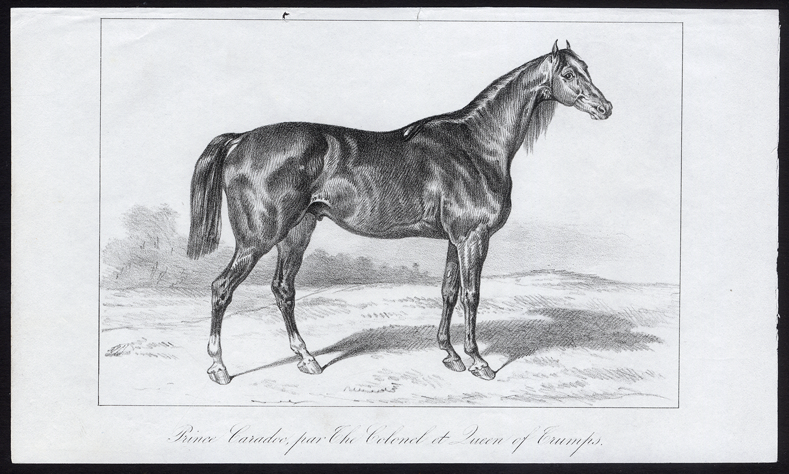 Antieke prent-volbloed renpaard-PRINS CARADOC-Journal des Haras-1848