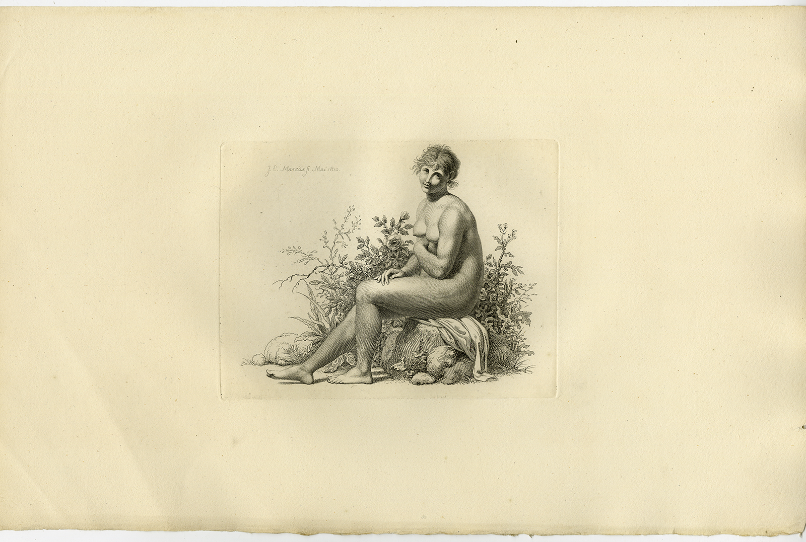 Antieke prent-VROUW-NAAKT-NAAKT-ZITTEN-ROCK-1810-Marcus-1834