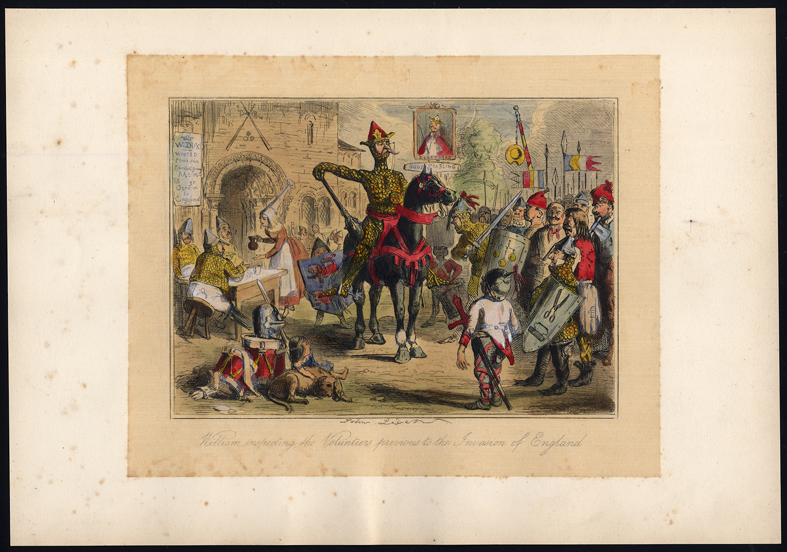 Antieke prent-WILLIAM THE CONQUEROR-INVASIE-ENGELAND-SATIRE-Beckett-Leech-1848