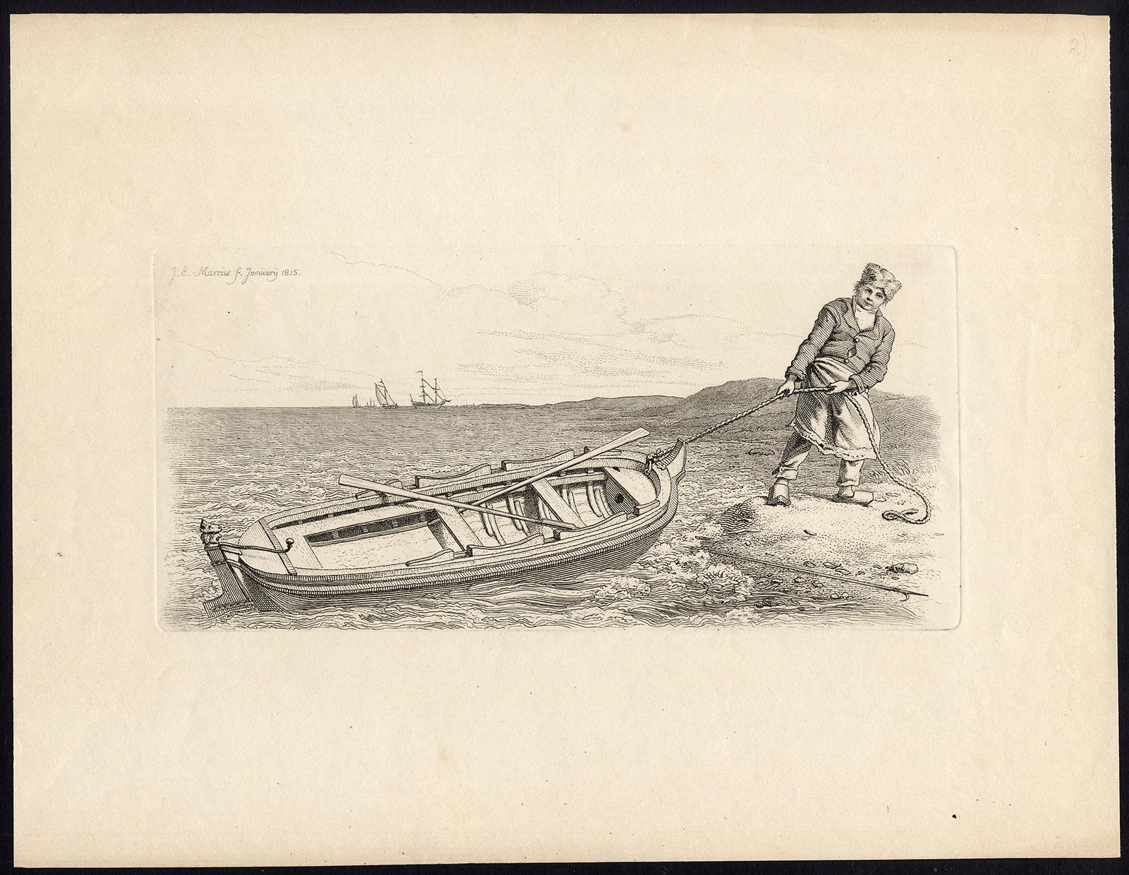 Antieke prent-ZEE-ROEIBOOT-Marcus-1815