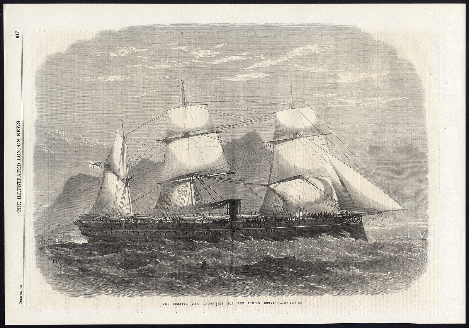 Antieke prent-ZEILSCHIP-HMS SERAPIS-TROOPSHIP-1867
