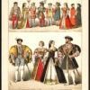 Beschrijving: Deze antieke print is afkomstig uit ‘Die Trachten der Volker, vom Beginn der Geschichte bis zum 19. Jahrhundert’ van Albert Kretschmer. Gepubliceerd 1882 door JG Bach in Leipzig, Duitsland. De tweede editie met 104 chromolithografische platen met afbeeldingen van kostuums van de mensen van de wereld, van de oude geschiedenis tot de 19e eeuw.