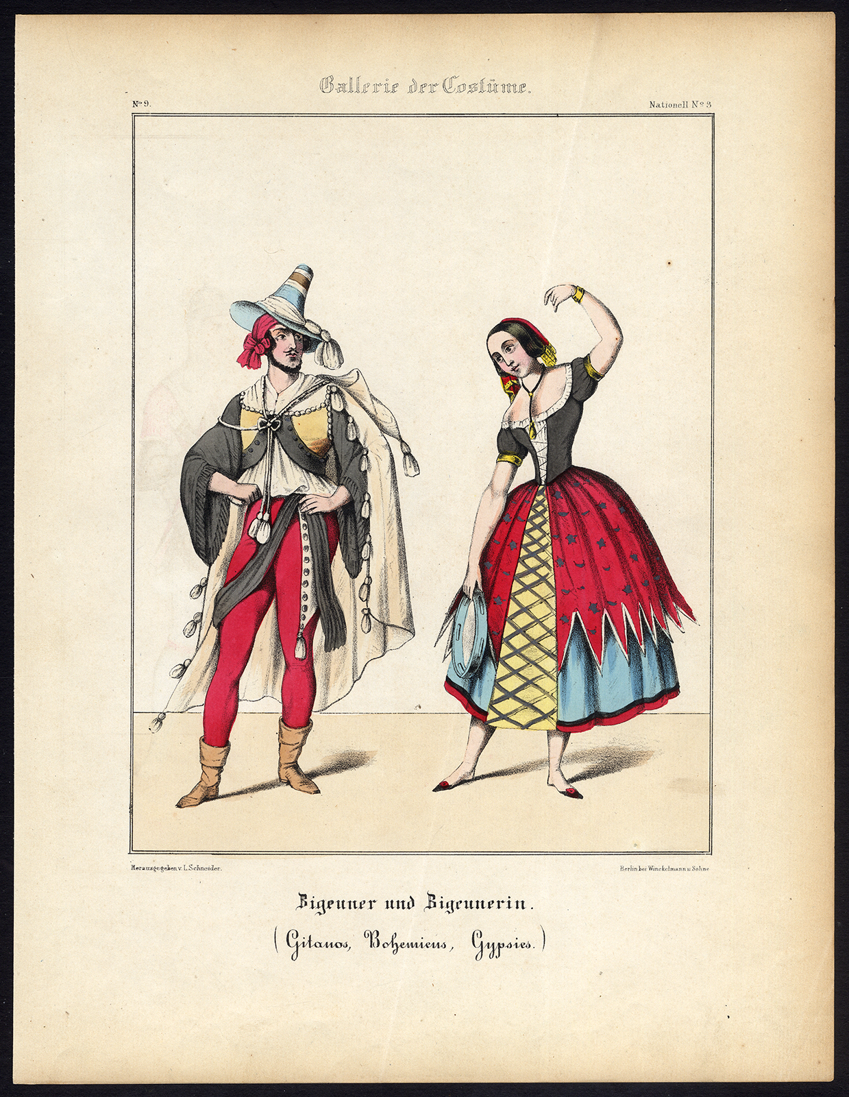 Antieke print-GYPSY-ZIGEUNER-KOSTUUM-Schneider-1844