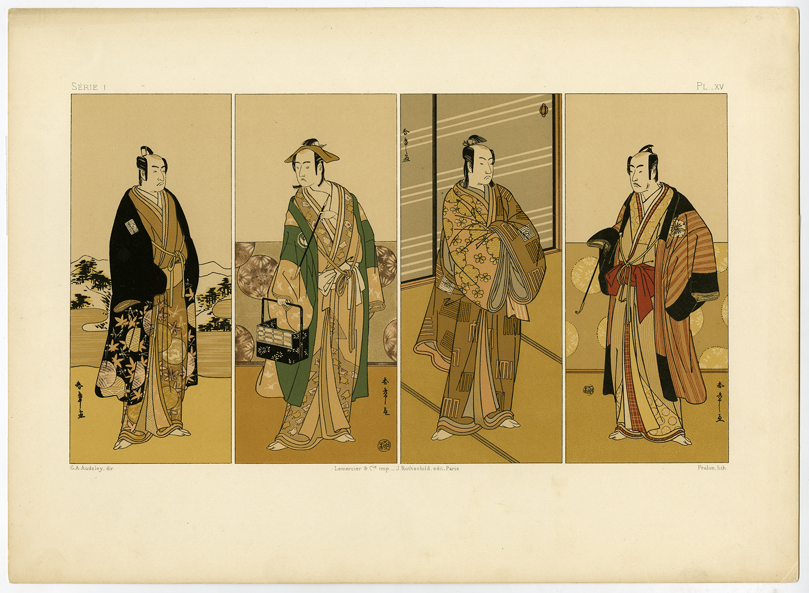 Antieke print-JAPANSE-KOSTUUM-HEREN-Audsley-Pralon-ca. 1880