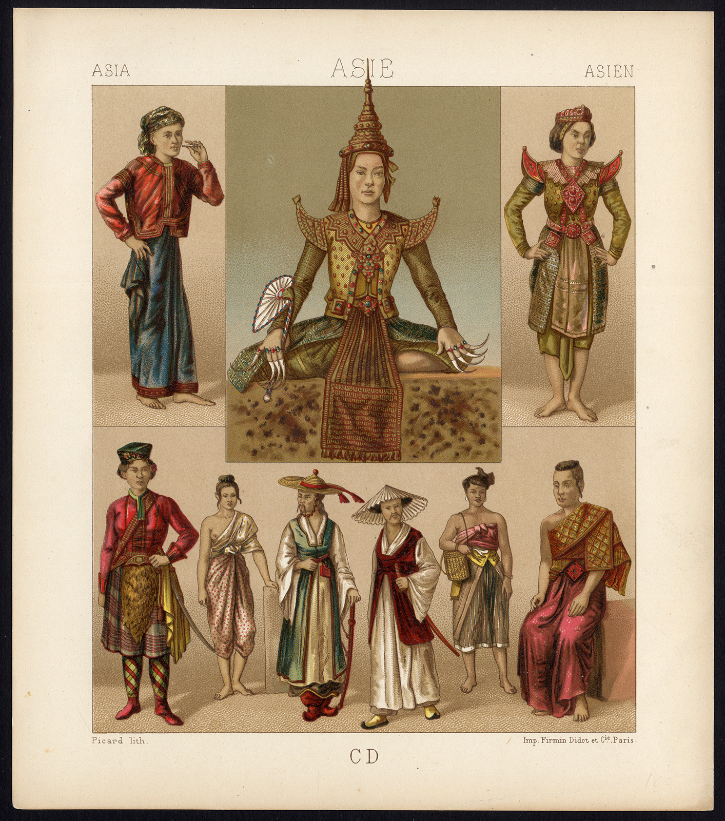 Antieke print-KOSTUUM-AZIË-JURK-INDONESIË-Picard-1880