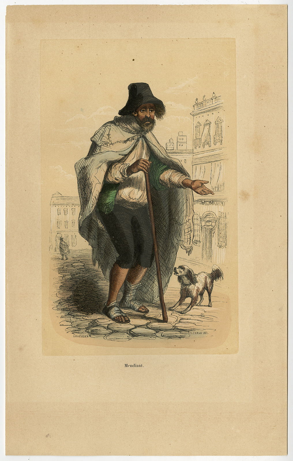 Onderwerp: Plaat: ‘Mendiant’. Dit bord toont een Spaanse bedelaar in 19e-eeuws kostuum.