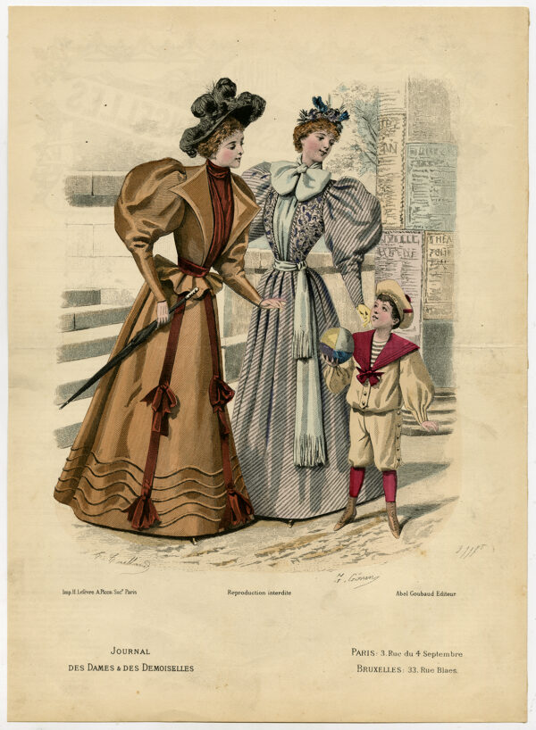 Antieke Print-MODE-KOSTUUM-JURK-VROUW-JONGEN-PL 2117-Lefevre-c. 1860