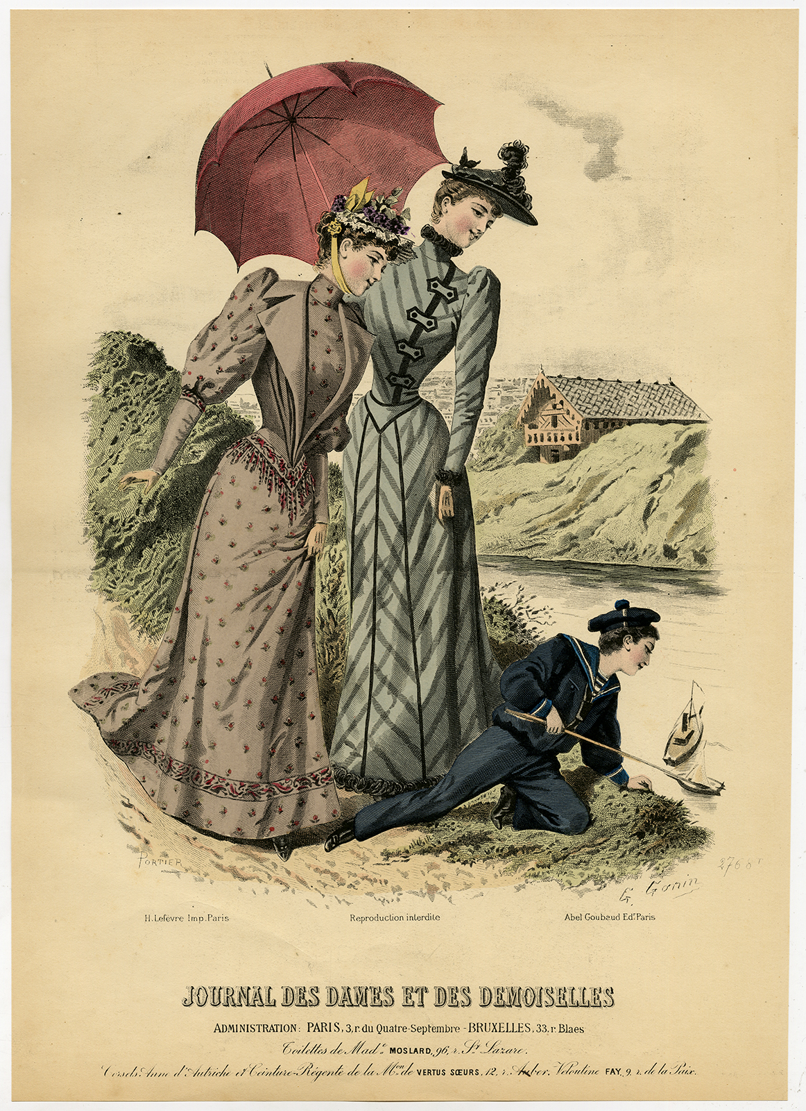 Antieke Print-MODE-KOSTUUM-JURK-VROUW-JONGEN-PL 2768-Lefevre-c. 1860