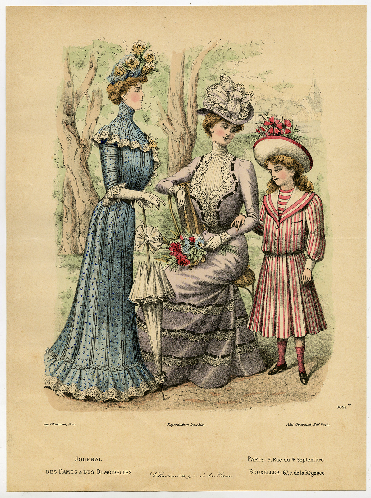 Antieke print-MODE-KOSTUUM-JURK-VROUW-MEISJE-PL. 3822-Lefèvre-c. 1860