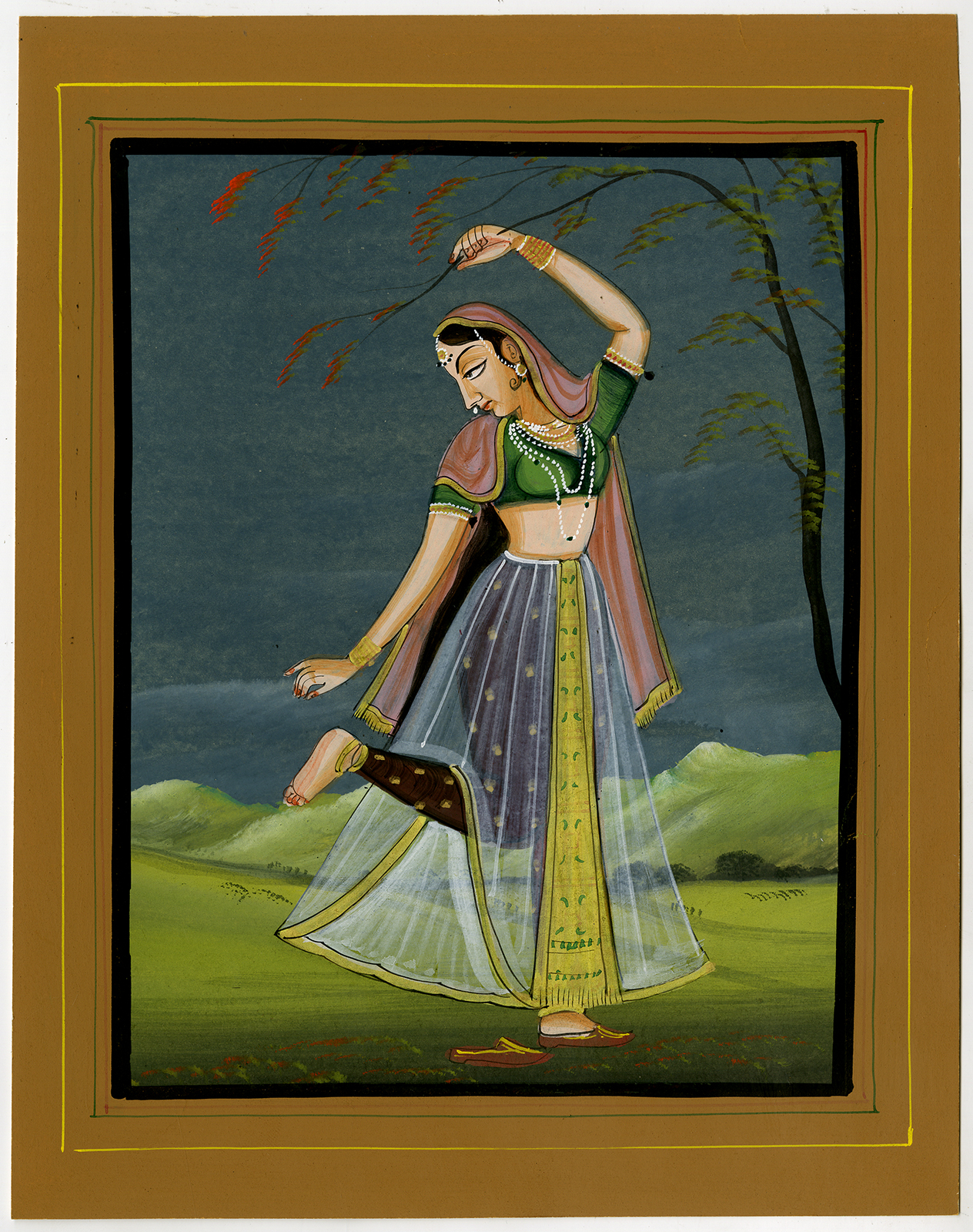 Antieke tekening-VROUW-KOSTUUM-INDIA-MINIATUUR-II-Anoniem-20e eeuw.