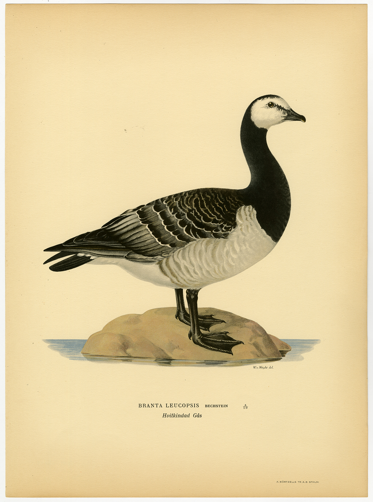 Onderwerp: Plaat : ‘Branta leucopsis Bechstein.’ (Brandgans).