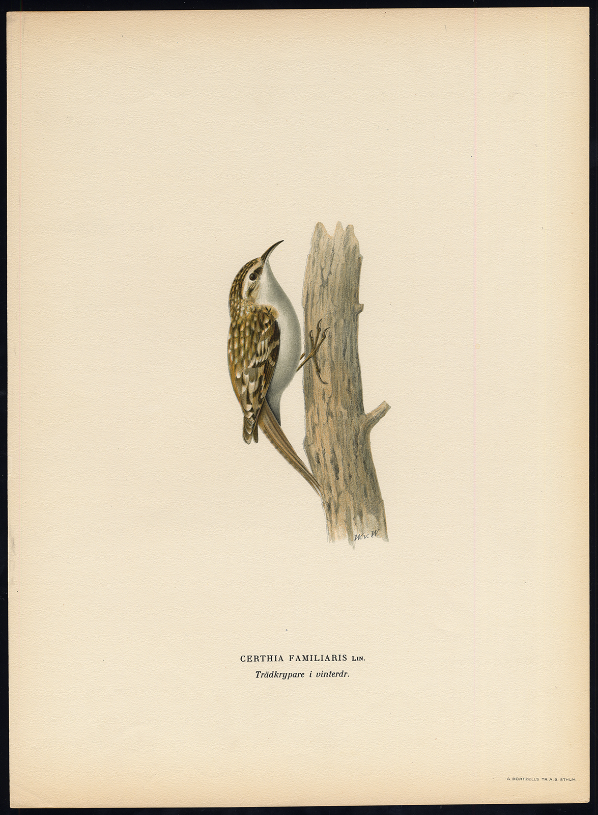 Onderwerp: Plaat : ‘Certhia familiaris Lin.’ (Euraziatische Boomkruiper of Gemeenschappelijke Boomkruiper).