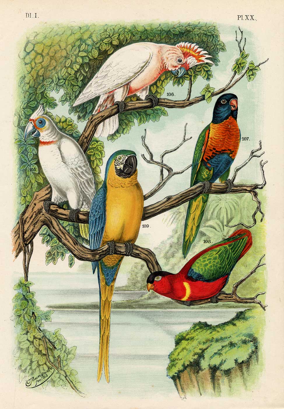Cockatoo Lori Maccaw Plaat 20 Nuyens Bungartz 1882