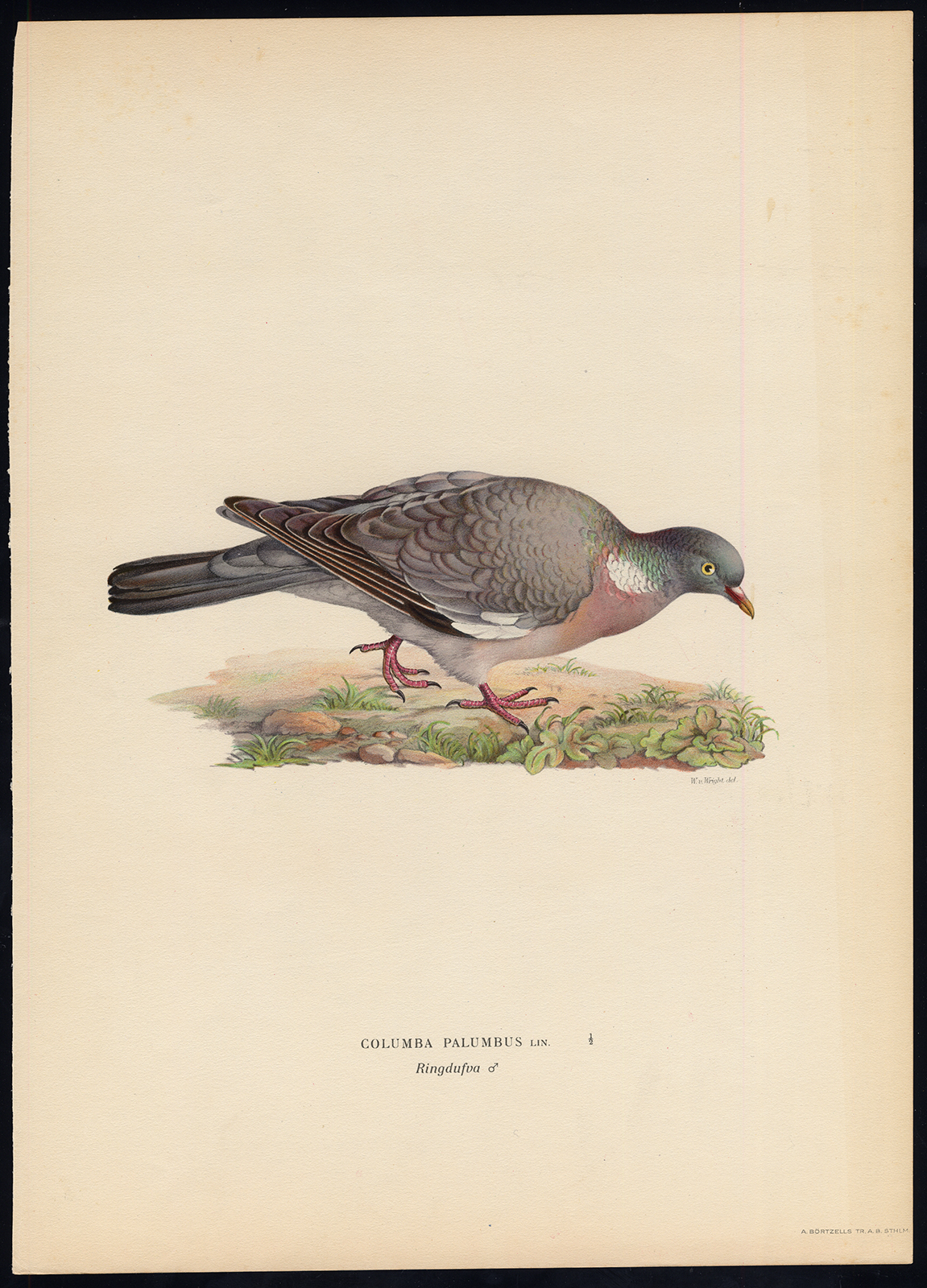 Onderwerp: Bord : ‘Columba palumbus Lin.’ (Gewone Houtduif).