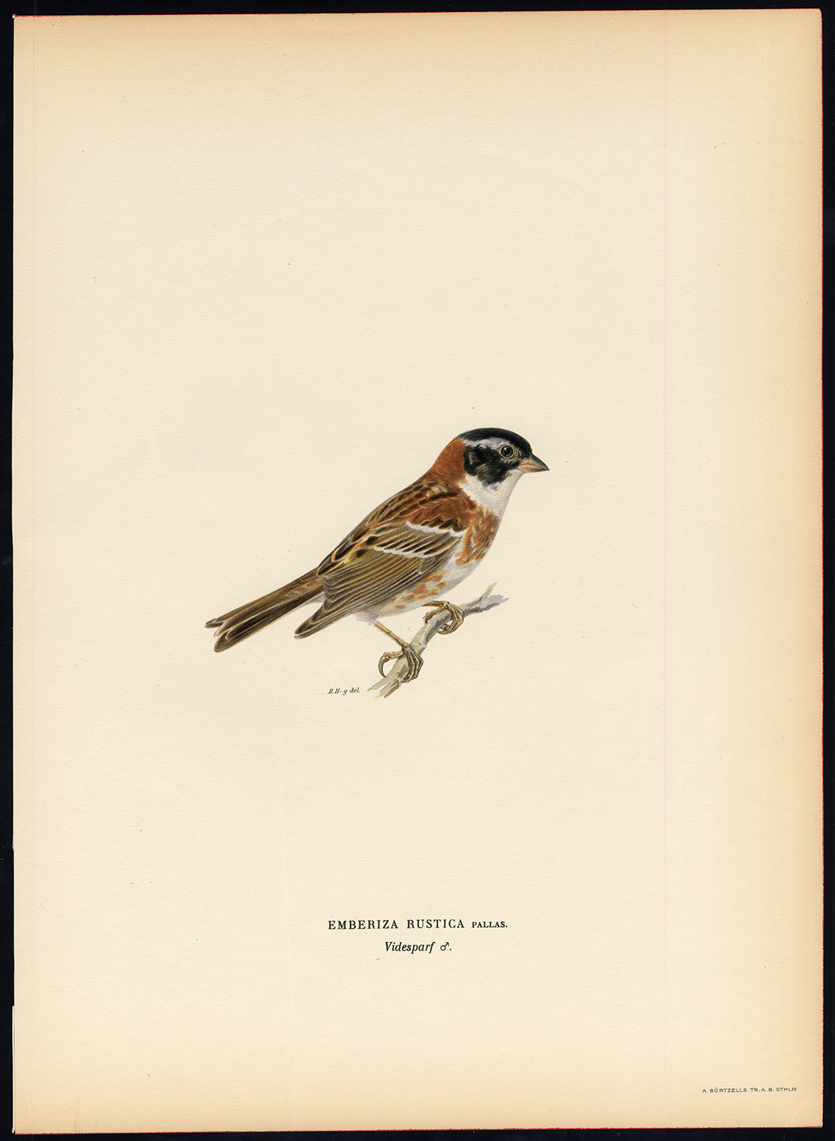 Onderwerp: Bord : ‘Emberiza rustica Lin.’ (Rustiek Gors).