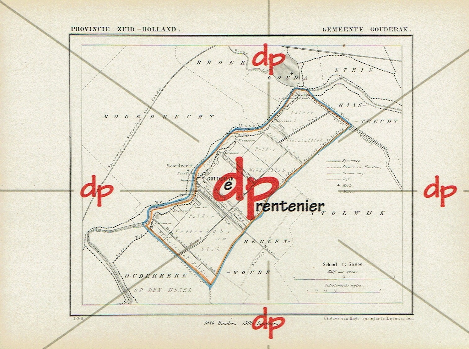 Kuyper kaart Gemeente Gouderak (Zuid-Holland) (1866)