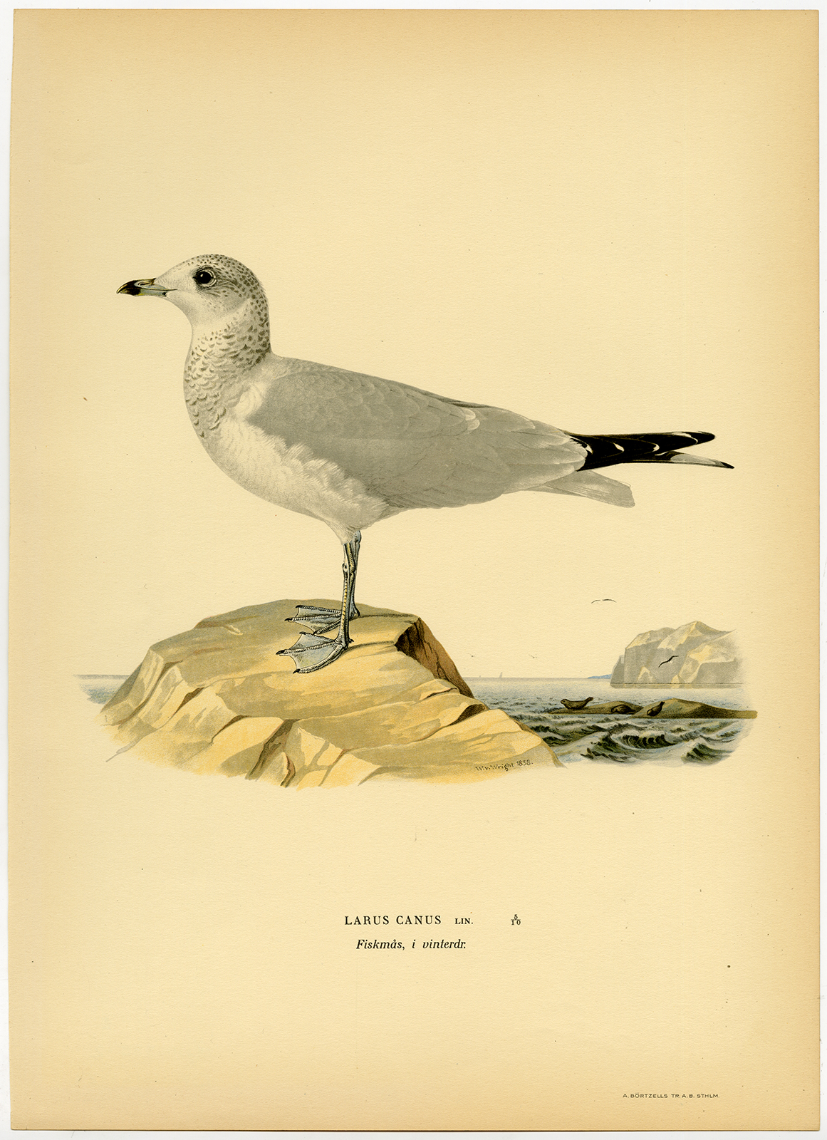 Onderwerp: Plaat : ‘Larus canus Lin.’ (Gewone of Miauwmeeuw, winterkleed).