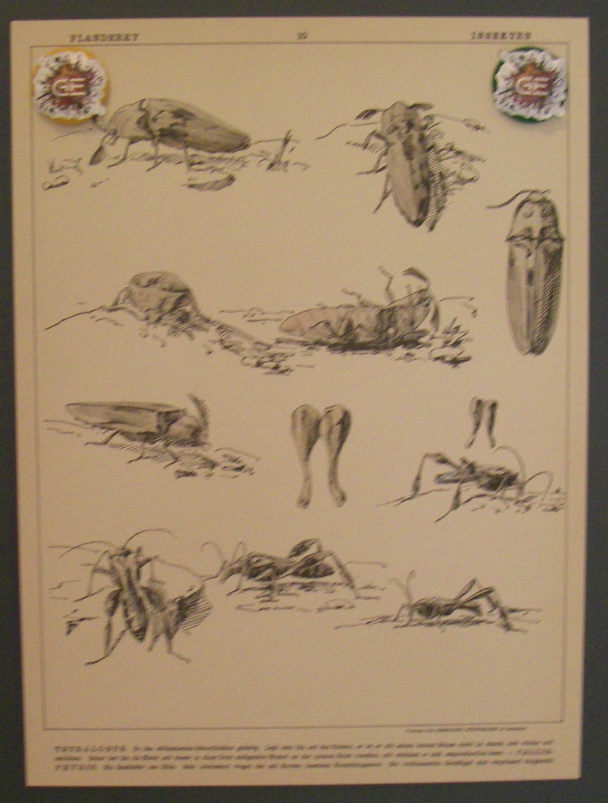Zeer fraaie en zeldzame prent van insecten, gelithografeerd op glad dik gebruind papier, in een zeer mooie conditie.