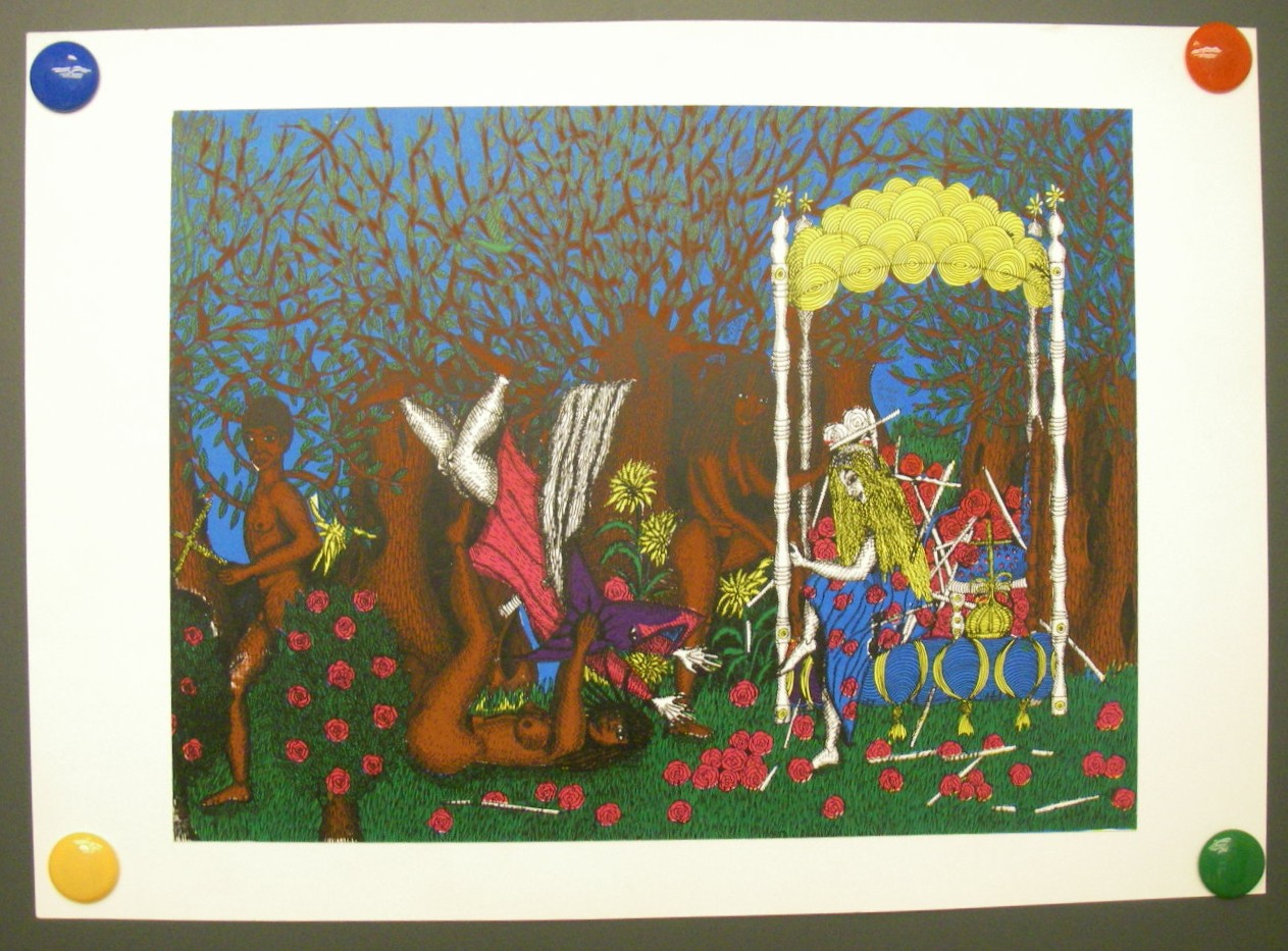 Het werk is geplakt op stevig wit onder papier.