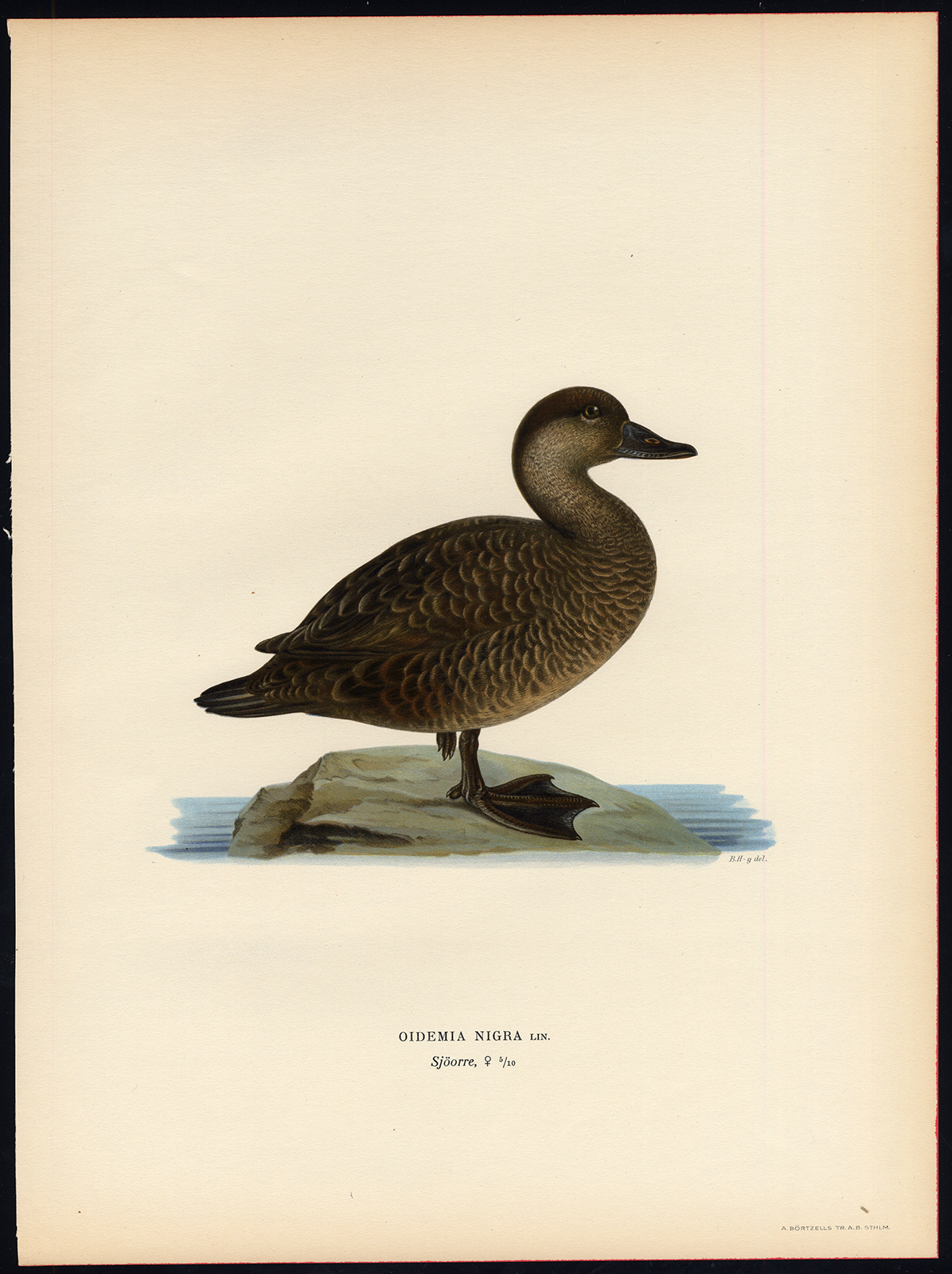 Onderwerp: Bord : ‘Oidemia nigra Lin.’ (Melanitta nigra – Gewone zee-eenden, vrouwtje).