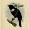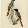 Onderwerp: Antieke prent, getiteld: ”1. Volvocivora Schierbrandi – 2. collocalia Linchi.” – Deze schaarse antieke prent toont de kleine koekoekshrik (Coracina fimbriata) en de grotgierzwaluw (Collocalia linchi).