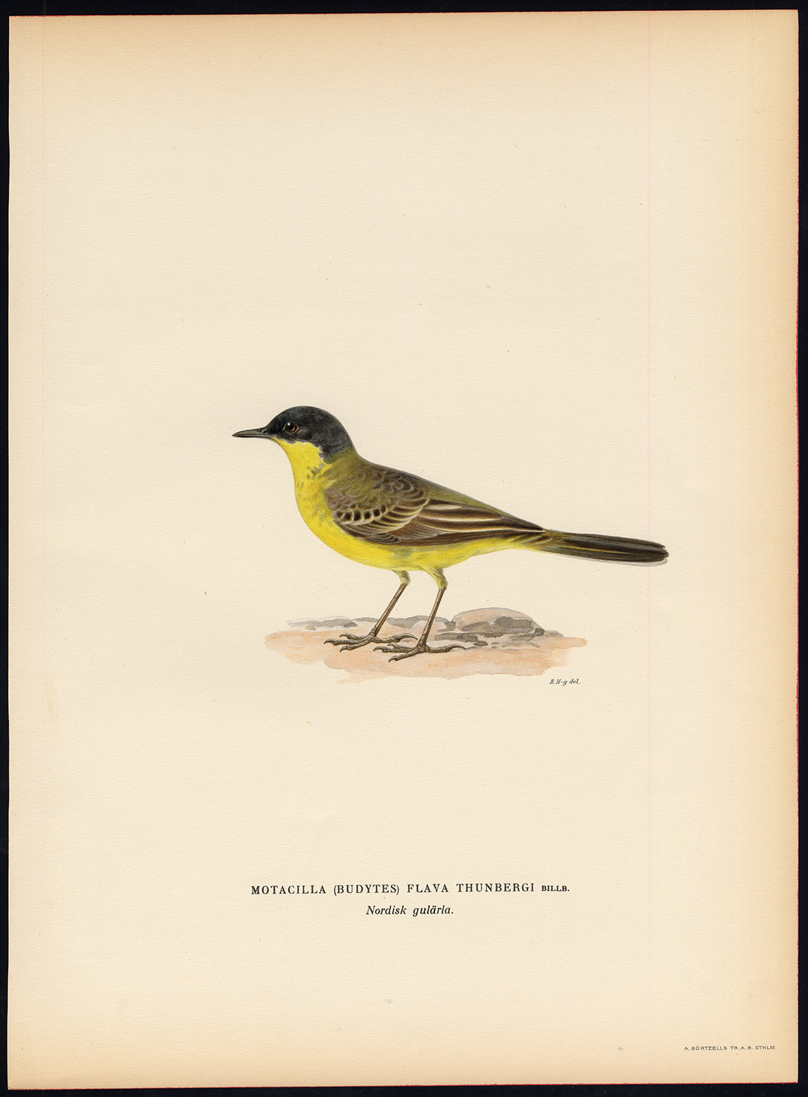 Onderwerp: Bord : ‘Motacilla flava Thunbergi Billb.’ (Donkerkopkwikstaart).