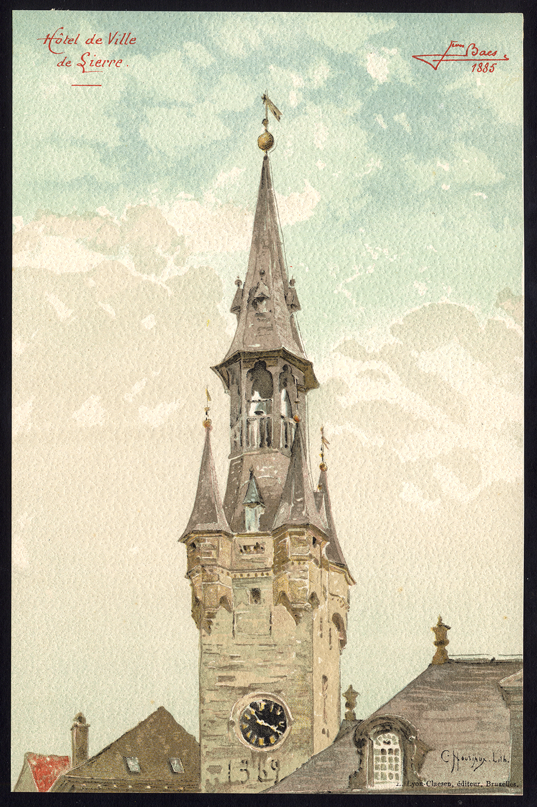 Oude prent-HOTEL DE VILLE-STADHUIS-TOREN-LIERRE-LIER-BELGIË-Baes-1890