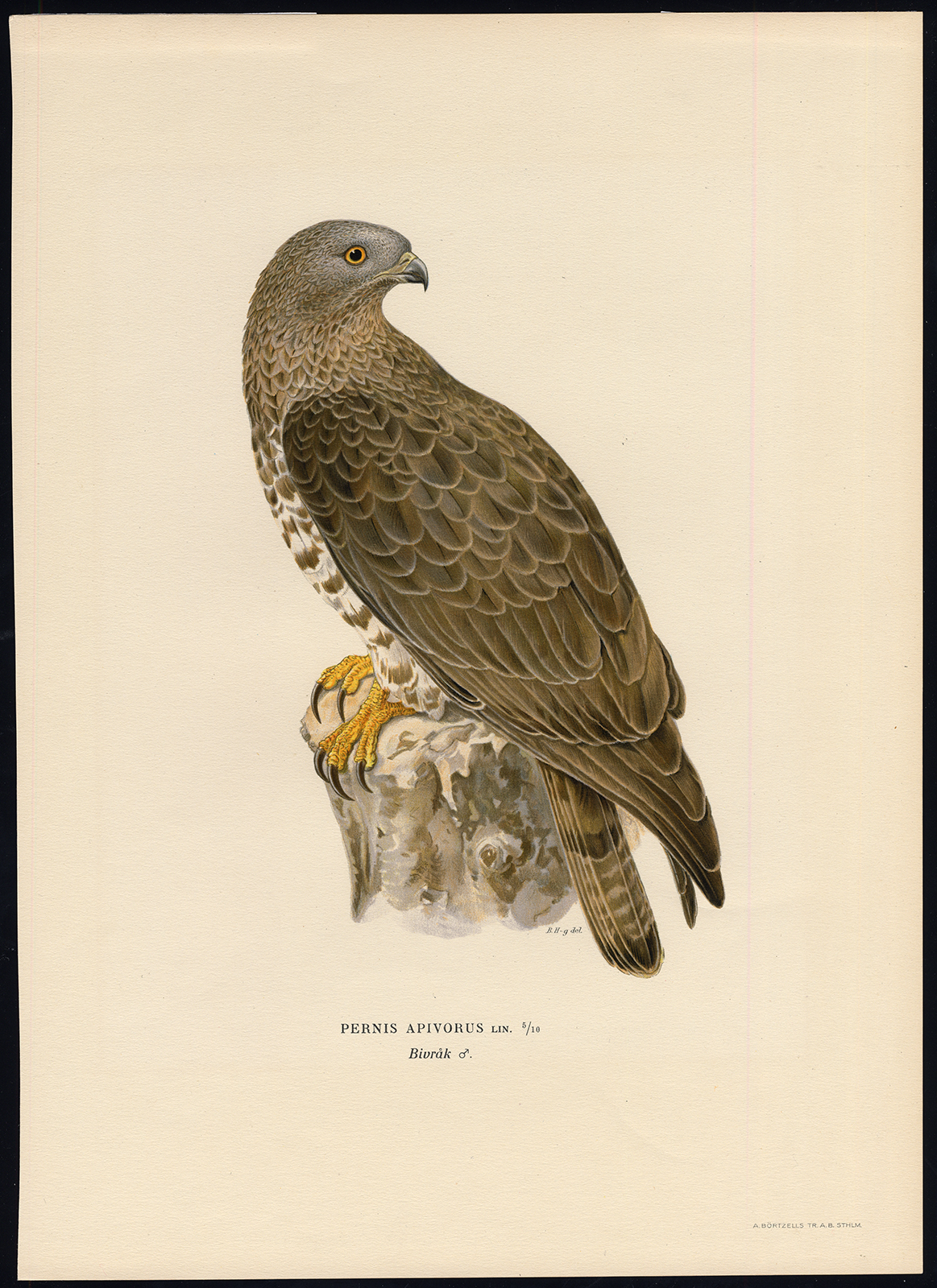Onderwerp: Bord : ‘Pernis apivorus Lin.’ (Europese Wespendief).