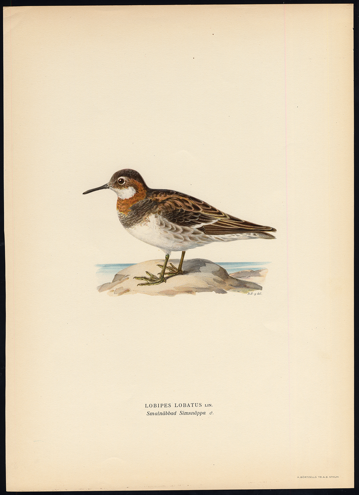 Onderwerp: Bord : ‘Lobipes lobatus Lin.’ (Phalaropus lobatus – Roodhalsphalarope).