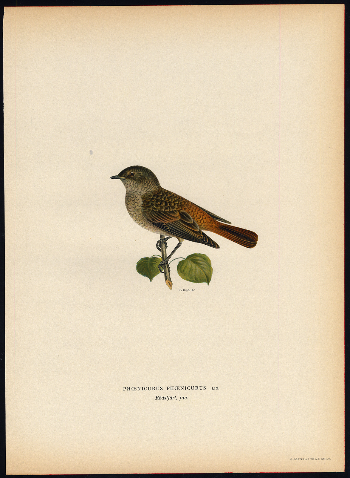 Onderwerp: Plaat: ‘Phoenicurus phoenicurus Lin.’ (Gemeenschappelijke Roodstaart, jong).