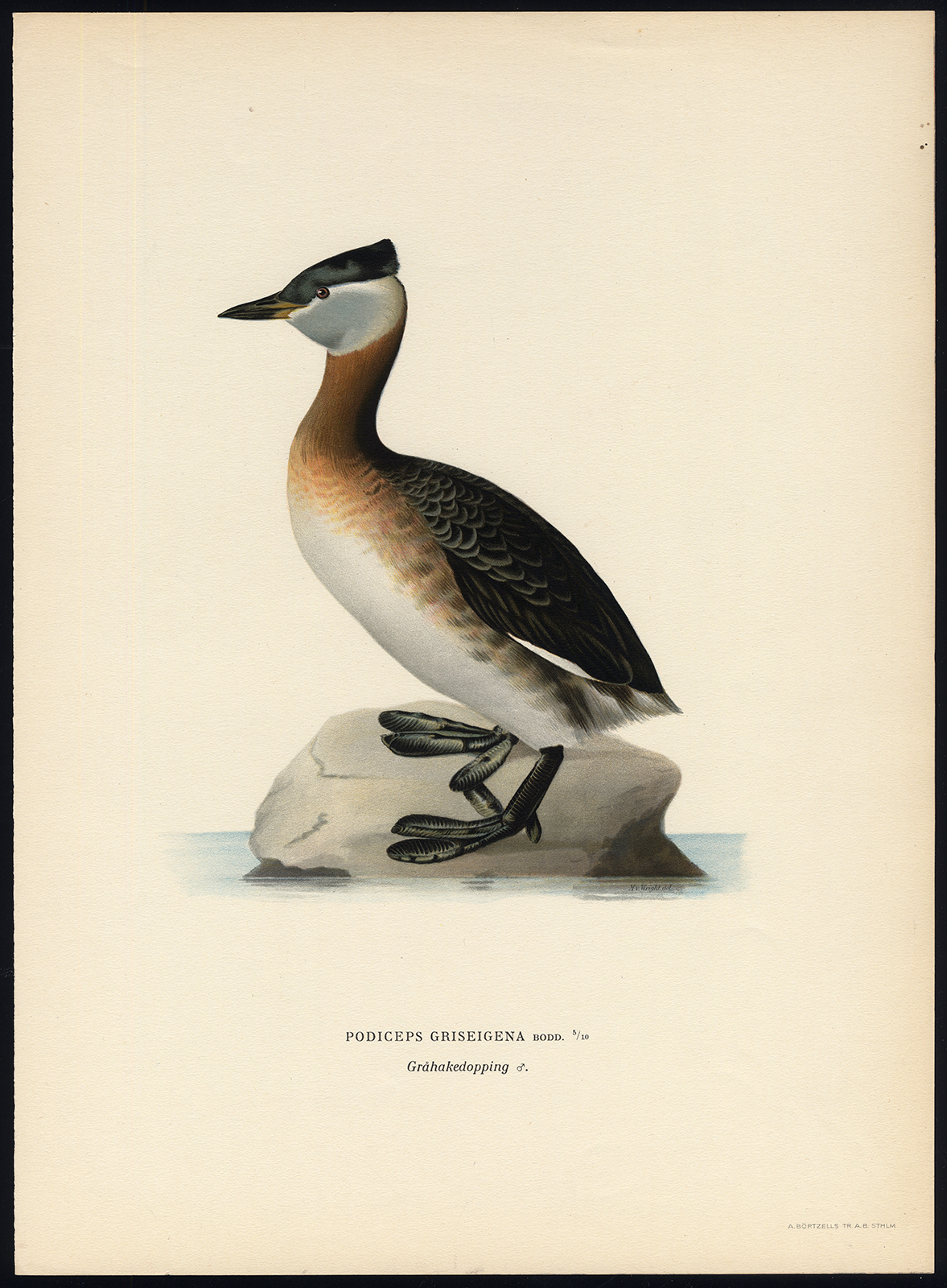Onderwerp: Plaat: ‘Podiceps griseigena Bodd.’ (Roodhalsfuut, mannetje).