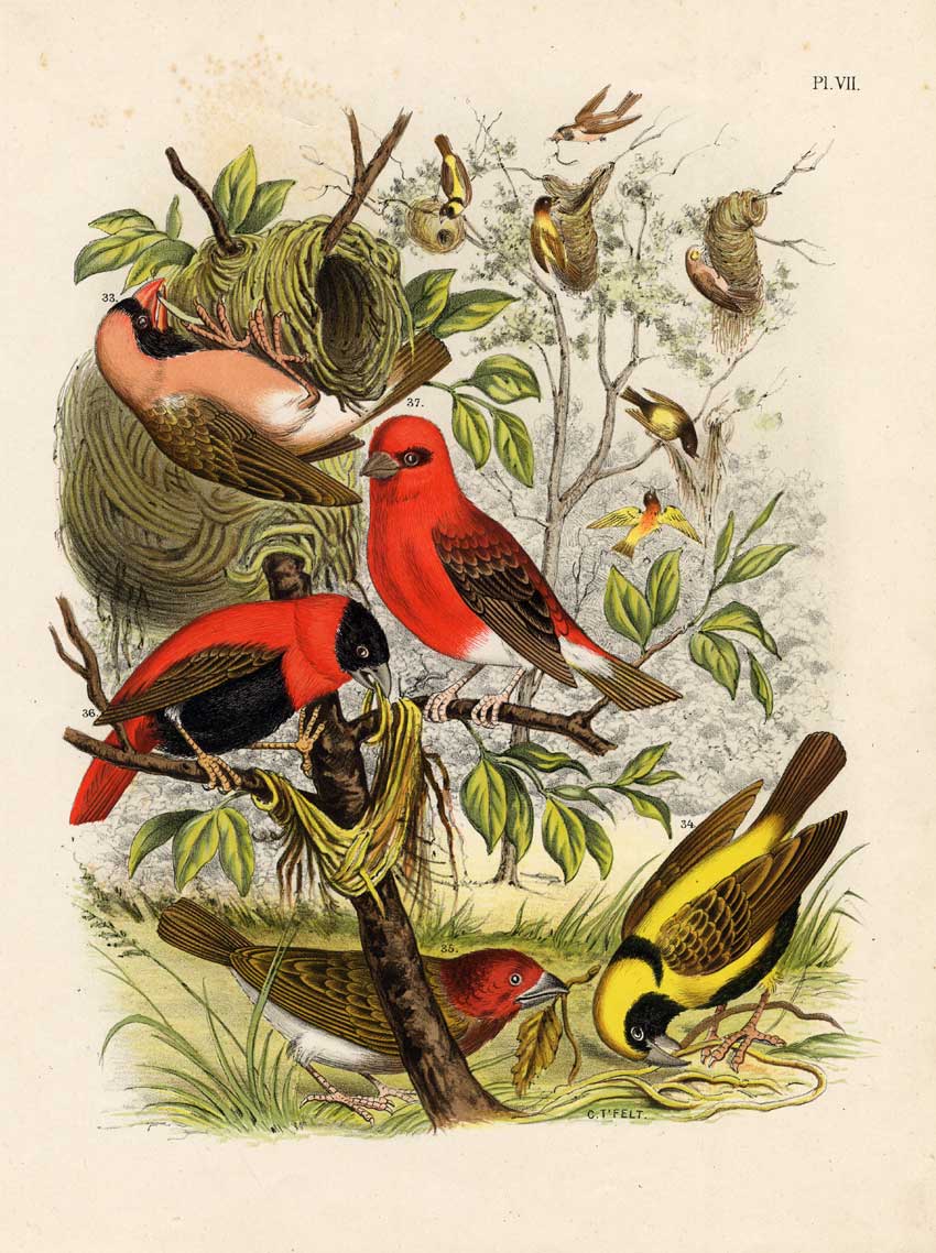 Red Bishop Weaver Plaat 7 Nuyens Felt 1882