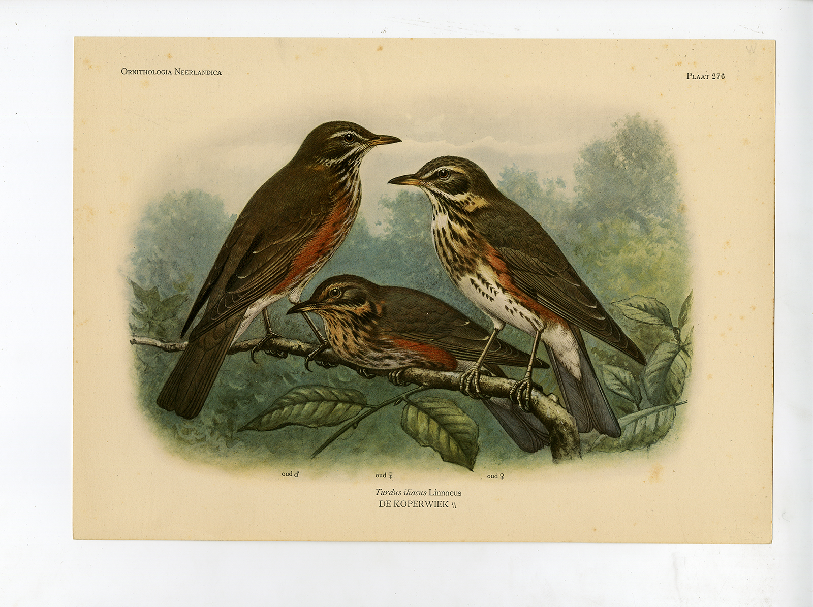 Redwing Lijster Turdus Iliacus Plaat 276 Van Oort 1922