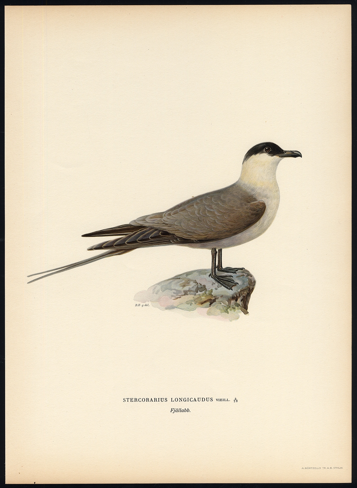 Onderwerp: Bord : ‘Stercorarius longicaudus Vieill.’ (Jaeger met lange staart of Jager).