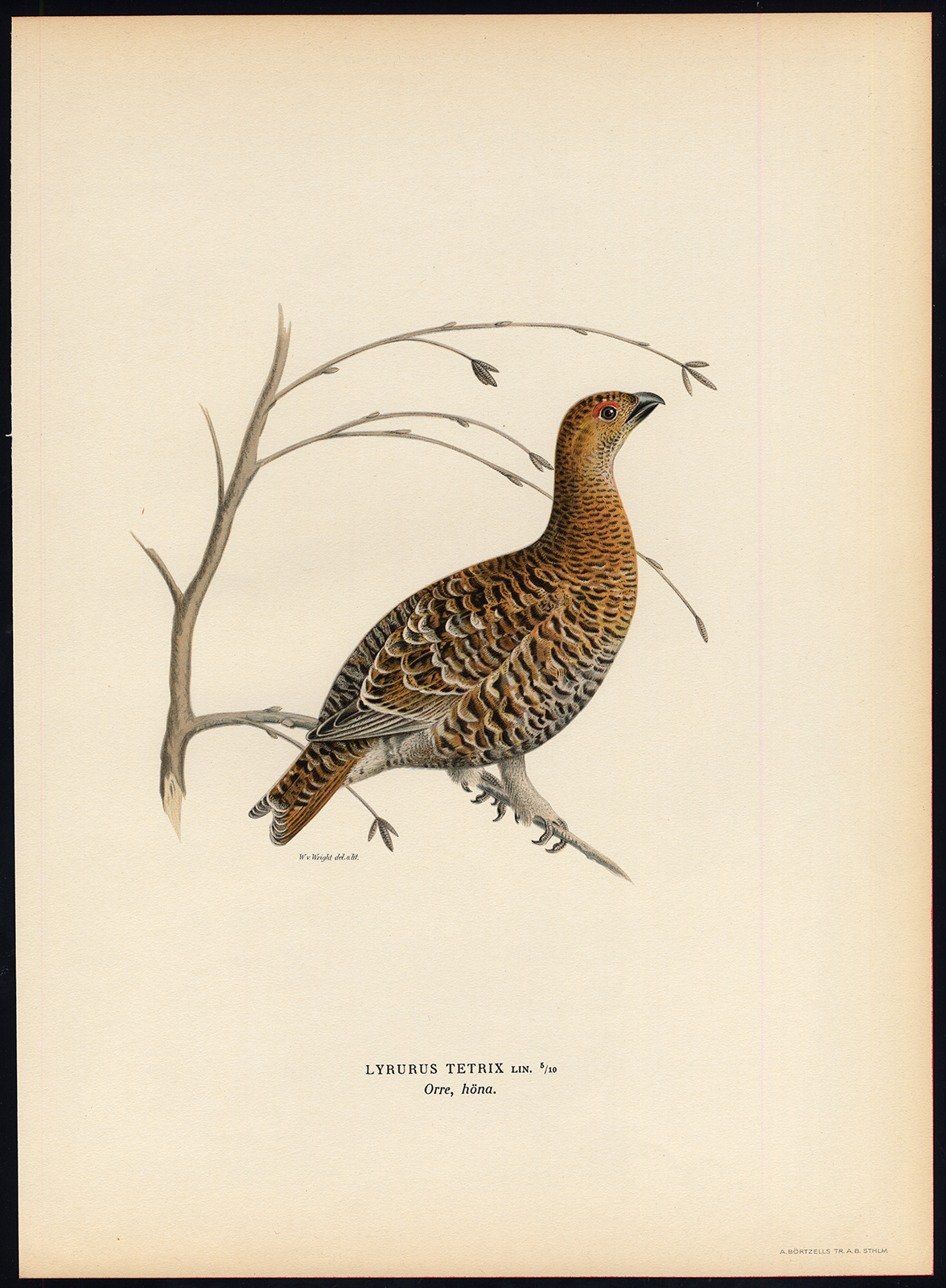 Onderwerp: Plaat : ‘Lyrurus tetrix Lin.’ (Tetrao tetrix – Korhoen).