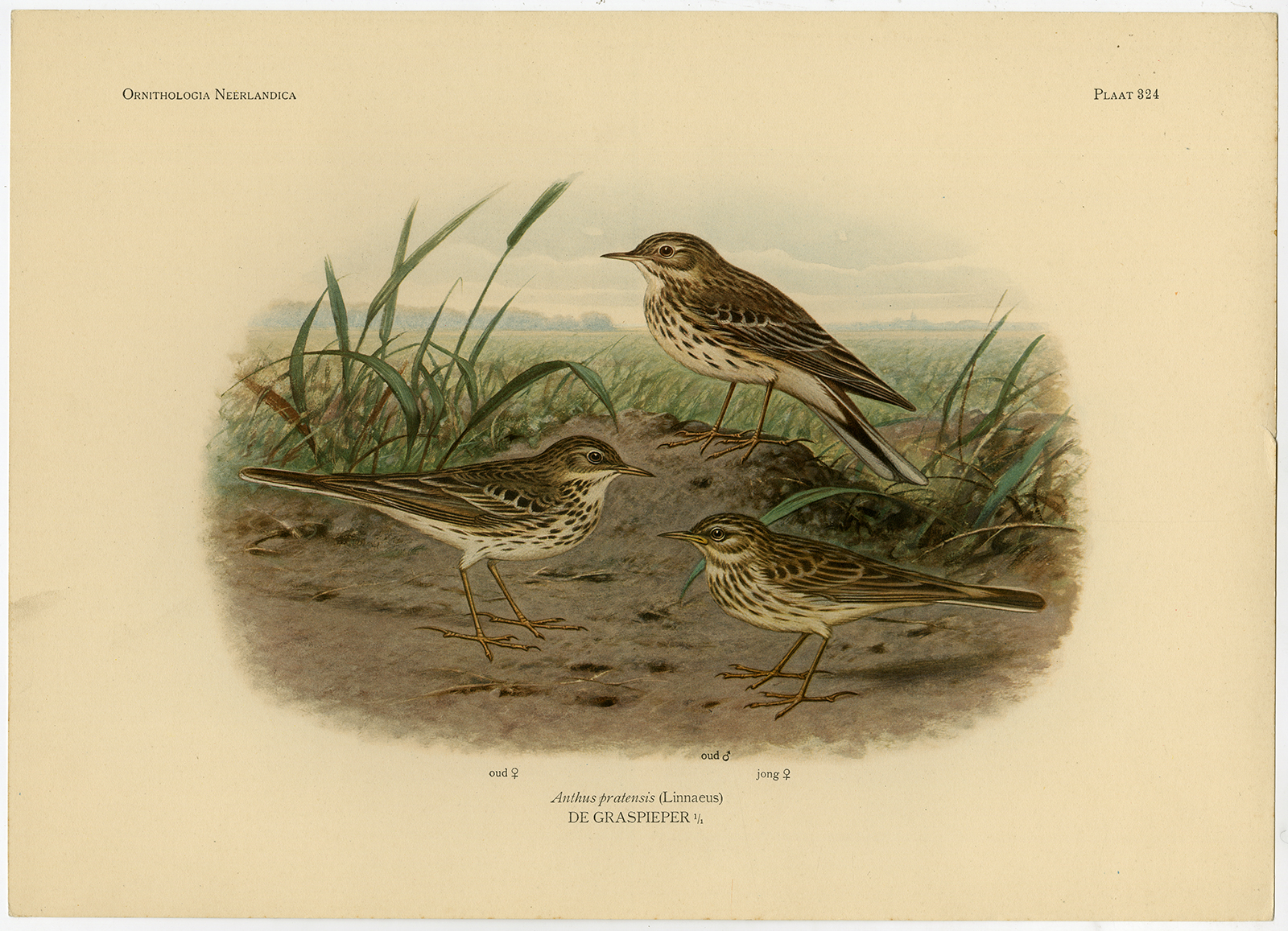 Weidepipit Anthus Pratensis Plaat 324 Van Oort 1922